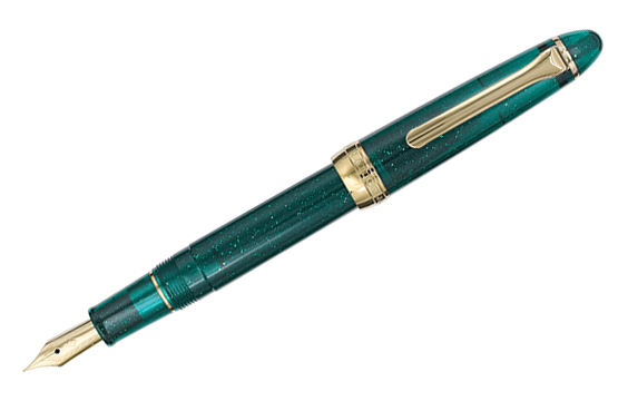 Японская перьевая ручка Sailor Shikiori Yukiusagi из новой коллекции Kusa Asobi ("Ностальгия по природе"). Ручка Yukiusagi символизирует зиму. Yukiusagi в переводе с японского означает "снежный кролик" - это снежная скульптура, которую лепят из снега дети в Японии. Глазки таких кроликов делают из ягод, а ушки - из зеленых листьев. Поэтому "зимняя" ручка неожиданно для нас стала изумрудного цвета с блестками.