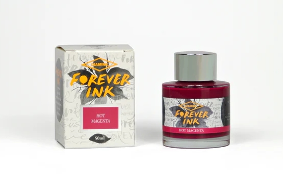 Чернила Hot Magenta из новой пигментной серии от Diamine Forever ink. Цвет чернил создает не водорастворимый краситель, а взвесь наночастиц пигментов.