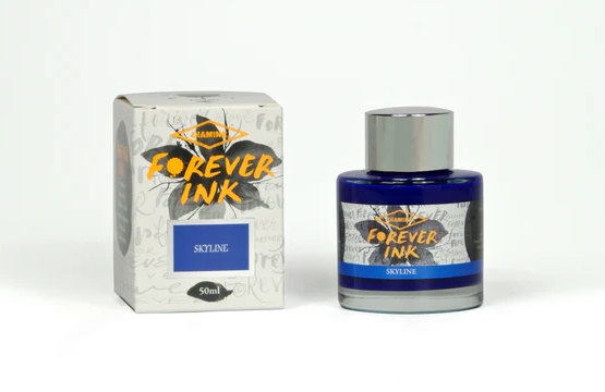 Чернила Skyline из новой пигментной серии от Diamine Forever ink. Цвет чернил создает не водорастворимый краситель, а взвесь наночастиц пигментов.