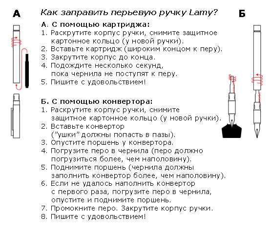 Lamy T10 или любыми чернилами для перьевых ручек с использованием