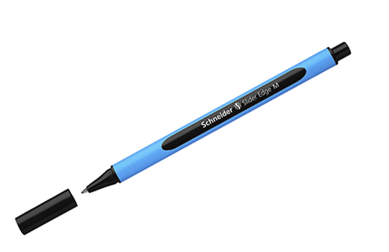 Шариковая ручка Schneider Slider Edge (M). Эргономичный трёхгранный корпус ручки изготовлен из синего пластика и покрыт приятной на ощупь резиной голубого цвета. Небольшой колпачок фиксируется на ручке с едва заметным щелчком, а также надевается на её обратную сторону.