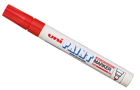 Практичный перманентный маркер Uni-ball Paint. Пулевидный твердый кончик позволяет проводить линии шириной 2.2-2.8 мм. Маркер заправлен перманентными чернилами на масляной основе, они быстро высыхают, чернила свето- и влагостойкие. Uni-ball Paint подходят для любых поверхнстей, они пишут на бумаге, картоне, керамике, пластике, стекле, дереве и металле.